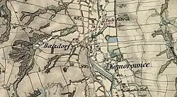 In der Beschreibung Teschener Schlesiens von Reginald Kneifl im Jahr 1804 hatte Batzdorf (polnisch Komorowice) in den fürstenlichen Kammergütter zur Stadtkirche in Bielitz eingepfarrtes Dorf 29 Häuser mit 241 Einwohnern, die nur Deutsch sprachen, während das Mückendorf (polnisch Komorowice) im Besitztum des Grafs Andreas Renard von Czechowice 19 Häuser mit 76 Einwohnern hatte, die nur Schlesisch-Polnisch sprachen.[15]
