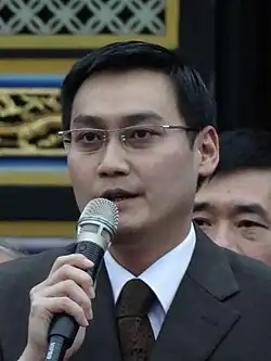 Nach der Xinhai-Revolution wurden die meisten Adelstitel abgeschafft, davon unberührt blieb aber der Herzog Yansheng. Von manchen wurde damals gefordert, dass nach dem Sturz der Qing-Dynastie, die von ethnischen Mandschus beherrscht wurde, ein Han-Chinese den Drachenthron besteigen sollte. Neben dem Nachfahren der Ming-Dynastie kam auch der Herzog Yansheng in Frage.[38] Unter anderem plädierte der konstitutionelle Monarchist Liang Qichao für eine Monarchie unter einem Nachfahren des Konfuzius.[39] Aber spätestens mit der kurzzeitigen Herrschaft von Yuan Shikai, der sich selbst zum Kaiser proklamierte, endeten die meisten monarchistischen Bestrebungen.