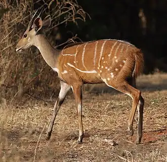 - ↑ a b Alexandre Hassanin, Marlys L.Houck, Didier Tshikung, Blaise Kadjo, Heidi Davis und Anne Ropiquet: Multi-locus phylogeny of the tribe Tragelaphini (Mammalia, Bovidae) and species delimitation in bushbuck: Evidence for chromosomal speciation mediated by interspecific hybridization. Molecular Phylogenetics and Evolution 129, 2018, S. 96–105, doi:10.1016/j.ympev.2018.08.006