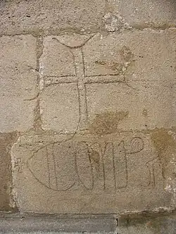 Markierung der Grabstelle Konrads an der Chorwand der Klosterkirche von Schlüsselau