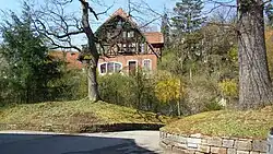 Die Giebeldächer auf den Krüppelwalmen sind in Tübingen und Umgebung sehr ungewöhnlich. Durch diese bekommt das Haus von der Giebelseite aus betrachtet den Ortgangverlauf eines Mansarddaches. Von der Traufseite aus nimmt man diese Giebeldächer durch den Absatz und die meist übliche Perspektive von unten nicht wahr. So kann man das Dach leicht mit einem Krüppelwalmdach verwechseln.[7]