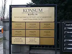 - ↑ Chronik auf der Internetseite konsum-berlin.de der Genossenschaft, 1945 bis 1989 ( vom 16. Januar 2017 im Internet Archive)