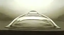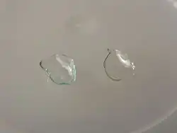 Allerdings hat die hydrophobe Oberfläche dieser Materialien den Nachteil, dass die Linsenoberfläche im Auge schlechter benetzbar ist, was zum Teil durch zusätzliche Oberflächenbehandlungen ausgeglichen werden muss. Ein weiterer Nachteil, der für die höhere Sauerstoffdurchlässigkeit in Kauf genommen werden muss, ist die höhere Steifigkeit von Silikonhydrogellinsen im Vergleich zu Hydrogellinsen. Dadurch können unter Umständen leichter mechanische Reizungen des Auges auftreten. Die Kontaktlinsenhersteller arbeiten stetig an neuen Materialien, um die genannten Probleme zu reduzieren. So sind inzwischen Silikonhydrogele erhältlich, die auch ohne Oberflächenbehandlung eine relativ gute Benetzbarkeit aufweisen (zum Beispiel Comfilcon).[15]