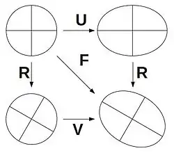 Wegen der Drehung um 90° ergibt sich die polare Zerlegung