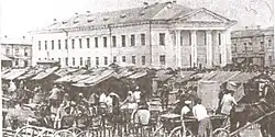 Das Gebäude wurde, nach dem der Vorgängerbau beim Podiler Großbrand von 1811 vernichtet wurde, von den Architekten Andrei Iwanowitsch Melenski und William Hastie in den Jahren 1815–1817 errichtet. Das Portal mit seinen Toskanischen Säulen, die einen Dreiecksgiebel tragen, ist eines der besten Beispiele des Klassizismus.[1][2]
