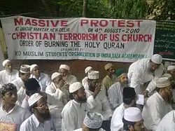 - ↑ a b International Protests Begin Ahead of Sept. 11 Koran Burning Event in Florida. FoxNews.com, 27. August 2010, abgerufen am 8. Januar 2011.