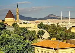 Blick auf den Alaadin-Hügel, dem alten Siedlungshügel (Höyük) im Zentrum von Konya, mit der Alaaddin Moschee