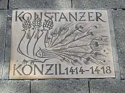 An das Konzil erinnert in Konstanz heute eine kleine Plakette auf der südlichen Marktstätte. 1993 wurde zudem im Hafen die Imperia aufgestellt, die Figur einer üppigen Kurtisane, die an die weltlichen Bedürfnisse der Konzilsbesucher erinnert.[15]