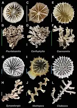 Bei den Hirnkorallen genannten, massiven Korallenformen entsteht die gewundene, stark gefaltete Form dadurch, dass sich mehrere Polypen einen langgestreckten Koralliten teilen, und sich zwischen den gemeinsamen Außenwänden tiefe Täler befinden. Diese Form wird auch Flabello-meandroid genannt.