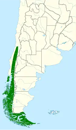 Der Vogel kommt in den südlichen Anden von Chile und Argentinien nach Süden bis Feuerland vor.