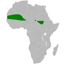 Die Kordofanlerche kommt in Afrika in zwei voneinander isolierten Regionen vor. Zu ihrem Verbreitungsgebiet zählen der Norden des Senegals sowie Mauretanien, Mali und der Südwesten von Niger. Ein zweites Verbreitungsgebiet liegt im Zentralgebiet von Sudan.