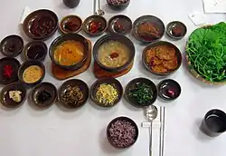- Ssam (쌈) – (dt. etwa: eingewickelt, eingepackt) Bezeichnet verschiedene Blattgemüse und andere Lebensmittel, die verwendet werden um beispielsweise Fleisch darin einzuwickeln