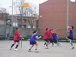 - Die Körbe befinden sich im Gegensatz zum Basketball nicht am Ende des Spielfeldes, sondern ein Sechstel der Spielfeldlänge im Feld. Außerdem hängen sie höher (3,5 m) und sind nicht mit einem Brett hinter dem Korb ausgestattet. Es kann also von allen Seiten geworfen werden.