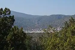 Blick vom östlich gelegenen Berg Pharonisi auf Korfos.