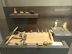 Fundstücke im Archäologischen Museum von Korfu, 7. bis 3. Jahrhundert v. Chr., unten die Rekonstruktion eines Kindergrabes aus dem 4./3. Jahrhundert v. Chr.