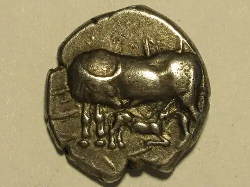 Stater aus Kerkyra, Kuh mit Kalb, ca. 450-400 v. Chr. geprägt