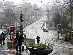 Die Kornhausbrücke nördlich der Altstadt wurde erstmals 1739 durch den Festungsbauer Johann Anton Herport vorgeschlagen, doch erst 1892 entschied sich der Gemeinderat zugunsten eines Brückenprojektes und leitete eine Volksabstimmung ein, die am 13. Januar 1895 die Realisierung eines Entwurfs der Ingenieure Albert und Hermann von Bonstetten, Paul Simons und des Architekten Henry Berchtold von Fischer in Gang setzte. Die Eisenkonstruktion wurde im Juli 1897 begonnen. Binnen weniger Monate wurde der grosse Bogen fertiggestellt, und am 18. Juni 1898 wurde die Brücke eingeweiht. Sie hatte eine Nutzlast von 20 Tonnen. 1931 wurde sie den Anforderungen des modernen Verkehrs angepasst, indem man die Holzbepflasterung durch Asphalt ersetzte. 1953 verschwanden die alte Beleuchtung und die gusseisernen Geländer, und 1970/71 wurde die Fahrbahnplatte ausgetauscht. Dabei wurden auch die Strassenbahngleise in die Brückenmitte verlegt und die Leitplanken montiert. 1982 bis 1984 erhielt die Brücke unter anderem ihren blau-grünen Anstrich.