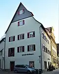 | Standort | Kornhausstraße 23 | Das Gebäude Kornhausstraße 23 ist ein vorstehendes, Straßenbild prägendes Eckhaus zwischen Kornhaus- und Hochstraße. Das dreigeschossige Steinhaus wurde 1409/1410 gebaut. Das Haus verfügt über einen mittelalterlichen Keller in Form einer Quadertonne, der im 19. Jahrhundert an der westlichen Seite erweitert wurde. Im Erdgeschoss befinden sich zwei Tonnengewölbe in West-Ost-Richtung. Das Erdgeschoss wurde 1856 zu einem Ladenlokal umgebaut. 1676 wurden im Erdgeschoss durch den Restaurator Max Bader Malereireste freigelegt. Das Treppenhaus ist klassizistisch gehalten. Der Dachstuhl stammt von 1409/1410. | |
