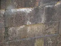 Den mangelnden Sinn in dieser Inschrift führte die Stadt auf „offensichtliche Fehler des lateinischen Textes“ zurück.[13] Schon bei erster Durchsicht fällt indes auf, dass die Übersetzung nicht korrekt sein kann. Die angegebene letzte Zeile „Joan Schrader erbaute es 1763“ würde im Lateinischen Joan Schrader fecit 1763 lauten – sie fehlt aber in der Inschrift vollständig. Dieser Text ist vielmehr deutlich abgegrenzt auf zwei anderen Sandsteinen in der nächsttieferen Quaderreihe eingeschlagen und hat mit der vorliegenden Inschrift nichts zu tun.