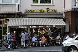 Auf der gegenüberliegenden Straßenseite entstand zwischen Kleinem Hirschgraben und Weißadlergasse ein dreigliedriger Baukörper, dessen Flucht nicht parallel zu der des Parkhauses liegt, sondern zu diesem eine trapezförmige Fläche aufspannt. Hier (Kornmarkt 9) befindet sich das 1914 gegründete Kaffeegeschäft Wackers Kaffee mit eigener Rösterei und Kaffeehaus, eine stadtbekannte Institution.