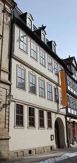 - ↑ Landesamt für Denkmalpflege Sachsen-Anhalt (Hrsg.): Denkmalverzeichnis Sachsen-Anhalt. Band 7: Falko Grubitzsch, unter Mitwirkung von Alois Bursy, Mathias Köhler, Winfried Korf, Sabine Oszmer, Peter Seyfried und Mario Titze: Landkreis Quedlinburg. Teilband 1: Stadt Quedlinburg. Fliegenkopf, Halle 1998, ISBN 3-910147-67-4, Seite 158