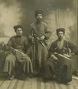 Die Kleidung der Kuban-Kosaken (Südrussland) nahm im 19. Jahrhundert viele kaukasische Elemente wie etwa die Tschocha auf