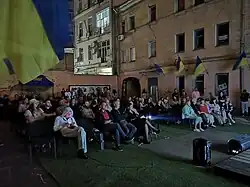 Das Kosakenhaus ist eines der Verwaltungszentren von Asow (ukrainisch Азов), einer der ukrainischen rechtsextremen Gruppierungen. Vor der Revolution diente das Kosakenhaus als Unterkunft für Militärangehörige, doch als die Kämpfe auf dem Platz begannen, übernahm Asow die Kontrolle und verwandelte das Gebäude in ein Rekrutierungszentrum, ein Feldlazarett und eine Leichenhalle. Asow mietet das Gebäude vom Verteidigungsministerium[1]. In den grauen, neoklassizistischen Korridoren des Gebäudes stehen Schreine für die Gefallenen der Gruppe sowie Hochglanzbroschüren, die für ihre vom Kulturministerium finanzierten Sommerlager werben, in denen Kinder patriotische Erziehung und Waffentraining erhalten.[2]