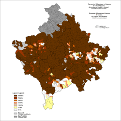 Die Kosovo-Albaner (albanisch Shqiptarët e Kosovës oder um sich zu differenzieren Kosovarët) sind eine regionale Gruppe der albanischen Ethnie im Kosovo. Ihre Muttersprache ist das Albanische. Sie stellen rund 93 Prozent der Landesbevölkerung.[1] Kosovo-albanische Emigranten leben in großer Zahl in Mitteleuropa (vor allem Schweiz und Deutschland) und in den Vereinigten Staaten.