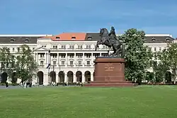 Reiterstatue von Ferenc II. Rákóczi mit Agrarministerium im Hintergrund.