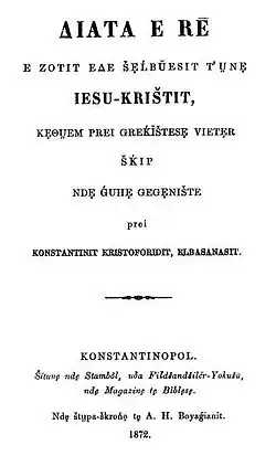 - Dhjata e Re. (Neues Testament, gegisch, 1869) (Digitalisat der Ausgabe von 1872)