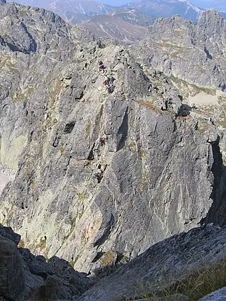 Der Höhenweg Orla Perć führt über die Gemsenbastei von der Riegelscharte (Zawrat) zum Kreuzsattel (Krzyżne).