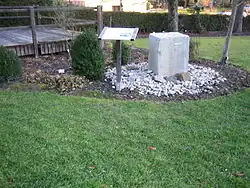 Der Quellstein ist rechts vom Eingang platziert, direkt vor der Sonnenterrasse und vor dem Salettl (Holzhaus).