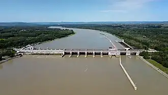 Die Anlage hat sechs Wehrfelder und zwei Schleusen (je 230 m × 24 m). Die Staulänge des Flusses beträgt rund 30 km und das Stauziel liegt auf 193,5 m ü. A. bei Flusskilometer 1.979,83.