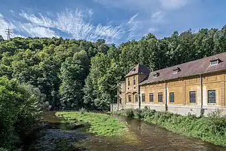 Jenseits des Umlaufberges wird der Kamp aufgestaut und mittels Stollen zum Krafthaus geführt.