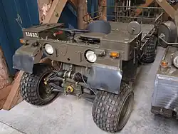 Das leichte und mit wenigen Handgriffen zur Luftverlastung in der Mitte zusammenklappbare Fahrzeug hob die Beweglichkeit der Infanterie maßgeblich. Die erste Bundeswehrausführung des Quads verfügte über vier speziell entwickelte Niederdruckreifen der Größe 22×12 Lypsoid (Kugelform), war aber ansonsten zunächst unverändert. Bei der Erprobung stellte sich heraus, dass das Fahrgestell für die vorgesehene Nutzlast von 750 kg zu schwach dimensioniert war. Außerdem erwies sich der eingebaute Zweitaktmotor als nicht kräftig genug. Somit wurde das Fahrzeug mit einem auf 26 PS gedrosselten Typ 427 Boxermotor[5] aus dem BMW 700 ausgerüstet und konnte nach Verstärkung des Rahmens und der Blattfedern[4] bei einem Eigengewicht von 735 kg rund 750 Kilogramm Last transportieren. Ein Nachteil waren die anfälligen der Kraftübertragung dienenden langen Antriebsketten an jeder Seite des Kleinfahrzeuges.[7]