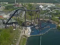 | Elemente | 87°-Drop Splashdown Immelmann Airtime-Hügel |