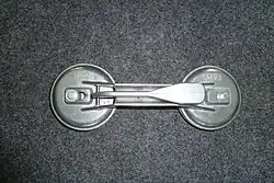 Der Krallenheber dient zur Aufnahme von Textilflächen wie zum Beispiel Teppichplatten. Der Krallenheber besteht aus einem Griff und je einer am Ende des Griffs befestigten Kopfplatte mit schrägen Stahlstiften. Die Stifte können durch das Betätigen einer Mechanik ausgefahren oder gespreizt werden und verkrallen sich so im Teppichbelag.[1] Somit lassen sich auch Doppelbodenplatten mit Textilbelag einfach aufnehmen.