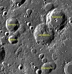 - ↑ D. H. Menzel, M. Minnaert, B. Levin, A. Dollfus, B. Bell: Report on Lunar Nomenclature by The Working Group of Commission 17 of the IAU. In: Space Science Reviews. Band 12, Nr. 2, 1970, S. 136–186, Kramers auf Seite 157, doi:10.1007/BF00171763, bibcode:1971SSRv...12..136M (englisch).