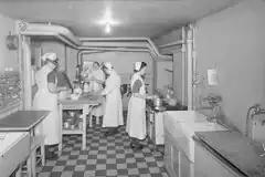 Beispielhafte Speisepläne aus britischen Krankenhäusern des Jahres 1945 geben Aufschluss über die damalige Ernährungspraxis. Die Verpflegung basierte vorwiegend auf einfach gehaltenen, sättigenden Lebensmitteln wie Brot mit Butter, Grießspeisen, geräuchertem Fisch, konserviertem Fleisch und süßem Gebäck, was die ernährungs- und versorgungsbedingten Rahmenbedingungen der Nachkriegszeit widerspiegelt.[34]