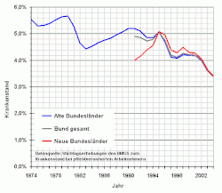 - ↑ Statista - Das Statistikportal, Durchschnittlicher Krankenstand in der gesetzlichen Krankenversicherung (GKV) in den Jahren 1991 bis 2016.