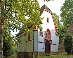 Unterhalb des Schlosses befindet sich die Schlosskapelle St. Nikolaus. Sie steht unter Denkmalschutz und wurde im Jahr 1956 mit Zustimmung des Bischöflichen Ordinariats von den Erben des Generalmajors Ludwig Freiherr von Biegeleben der Kirchengemeinde Kransberg übereignet. Sie wurde an der Stelle der zuvor im Jahre 1893 niedergelegten ehemaligen Pfarrkirche erbaut. Grundsteinlegung war am 2. November 1893. Benediziert wurde sie am 10. Juni 1895 durch den damaligen Ortspfarrer Rudolph Schetters. Baronin Agnes von Biegeleben ließ die alte Kirche niederlegen und diese Kapelle als Gruftkapelle für ihre Familie erbauen. Es wurden im Laufe der folgenden Jahre vier Mitglieder dieser Familie beigesetzt. Außerdem ruhen dort seit dem Jahr 1984 die Gebeine des Grafen Johann Maria Rudolph von Bassenheim bzw. das, was man bei der Eröffnung seines Sarges im Jahr 1893 noch gefunden hatte, sowie die Schädel zweier Frauen des ehemaligen Amtmannes Haas, welche beide im Kindbett gestorben sein sollen.