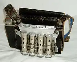 - ↑ Gebrauchsmuster DE1720379U: Tragbarer Geldwechselapparat. Angemeldet am 19. Januar 1956, veröffentlicht am 12. April 1956, Anmelder: Professor Alfred Krauth Apparatebau.