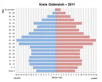 - ↑ Datenbank Zensus 2011, Kreis Gütersloh, Alter + Geschlecht. 30. April 2022, abgerufen am 30. April 2022.