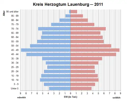 - ↑ Datenbank Zensus 2011, Kreis Herzogtum Lauenburg, Alter + Geschlecht ( vom 22. September 2021 im Internet Archive)