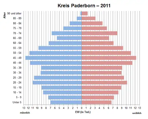- ↑ Datenbank Zensus 2011, Kreis Paderborn, Alter + Geschlecht ( vom 22. September 2021 im Internet Archive)
