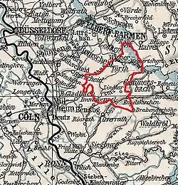 Durch den Wiener Kongress wurde das Großherzogtum Berg am 31. Mai 1815 Preußen zugesprochen. 1816 wurde preußische Verwaltungseinteilung in Provinzen, Regierungsbezirke und Kreise eingeführt. Dabei wurde auch der Kreis Wipperfürth gegründet, der im Wesentlichen aus dem Gebiet der Kantone Lindlar und Wipperfürth bzw. dem Gebiet des alten bergischen Amtes Steinbach bestand. Der Kreis war in die sechs Bürgermeistereien Engelskirchen, Klüppelberg, Cürten, Lindlar, Olpe und Wipperfürth gegliedert, die während der Franzosenzeit als Mairien gegründet worden waren. Durch die Gemeindeordnung für die Rheinprovinz erhielten 1845 alle Orte, die einen eigenen Haushalt führten, den Status einer Gemeinde.[3] Wipperfürth erhielt außerdem 1856 die Rheinische Städteordnung. Seitdem war der Kreis Wipperfürth wie folgt gegliedert: