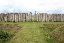 Im Inneren folgen mitunter ein oder mehrere (zum Beispiel in der Anlage Schalkenburg) konzentrische Palisadenringe aus Holzstämmen, die das Zentrum umschließen. Das Zentrum ist ein ebener freier Bereich, der manchmal Reste von Holzbauten enthält.