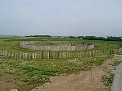 Die Lage der mittelneolithischen Kreisgrabenanlage in Rosenburg (Niederösterreich) ist an der Verfärbung des Ackerbodens erkennbarKreisgrabenanlage Kleinroetz, ÖsterreichKreisgrabenanlage von Künzing-Unternberg; Rekonstruktion im Museum Quintana