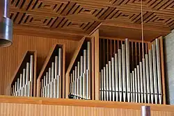 Im Jahr 1967 wurde für die grosse Abdankungshalle eine Orgel durch Orgelbau Kuhn, Männedorf errichtet. Das Instrument besitzt 26 Register auf 2 Manualen samt Pedal.[14]