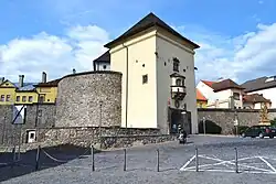 Die Innenstadt war durch einen vollständigen Mauerring mit drei Toren geschützt, trotz der Abrissarbeiten im nordöstlichen Teil sowie Beseitigung von zwei Toren sind die verbliebenen Wehranlagen in gutem Zustand erhalten. Das einzige noch stehende Tor ist das Untere Tor, das aus einem einfachen Tor weiterentwickelt und 1539 noch durch eine Barbakane verstärkt wurde. An der südöstlichen Mauerecke steht der noch vor 1441 erbaute Rote Turm, an der Südwestecke der Schwarze Turm.